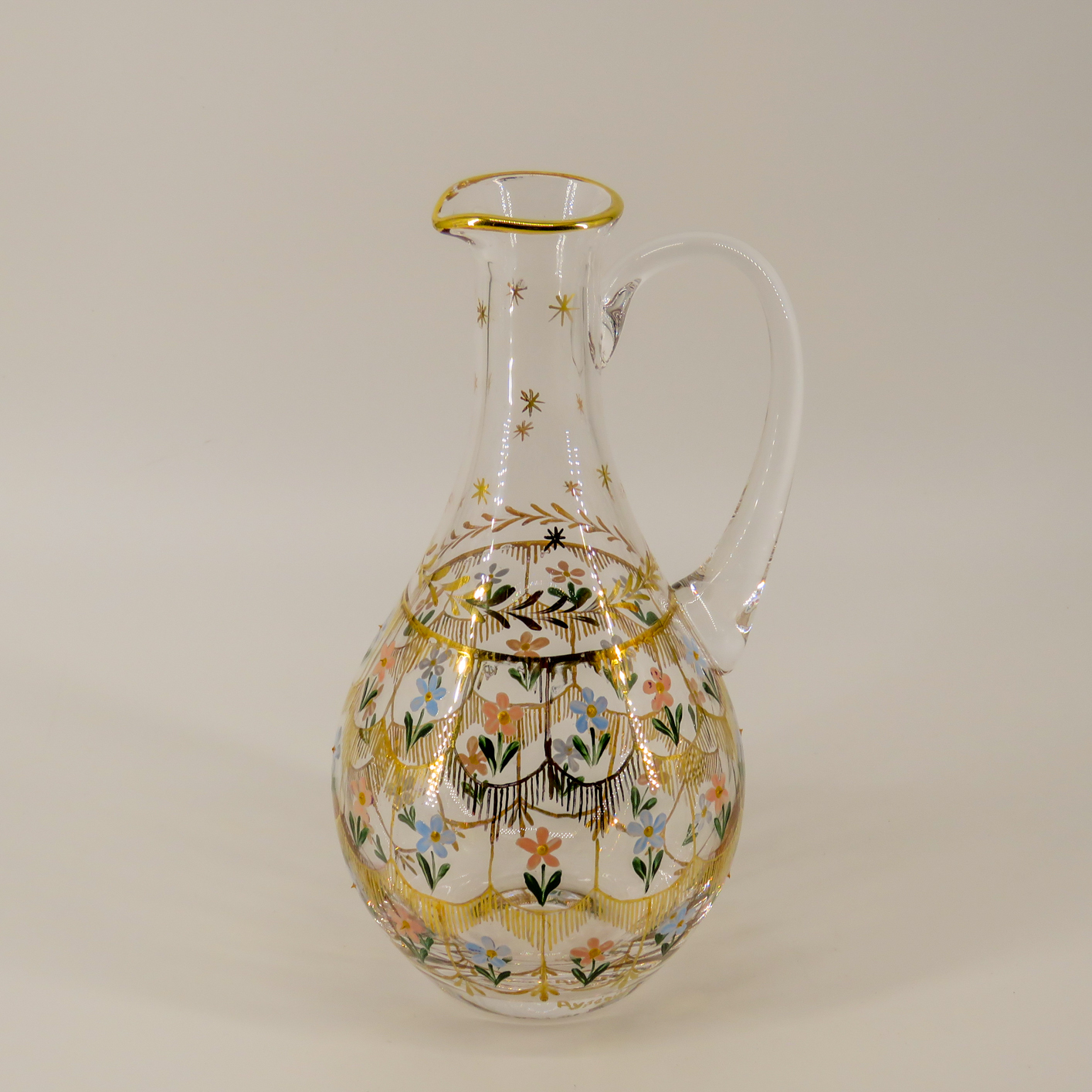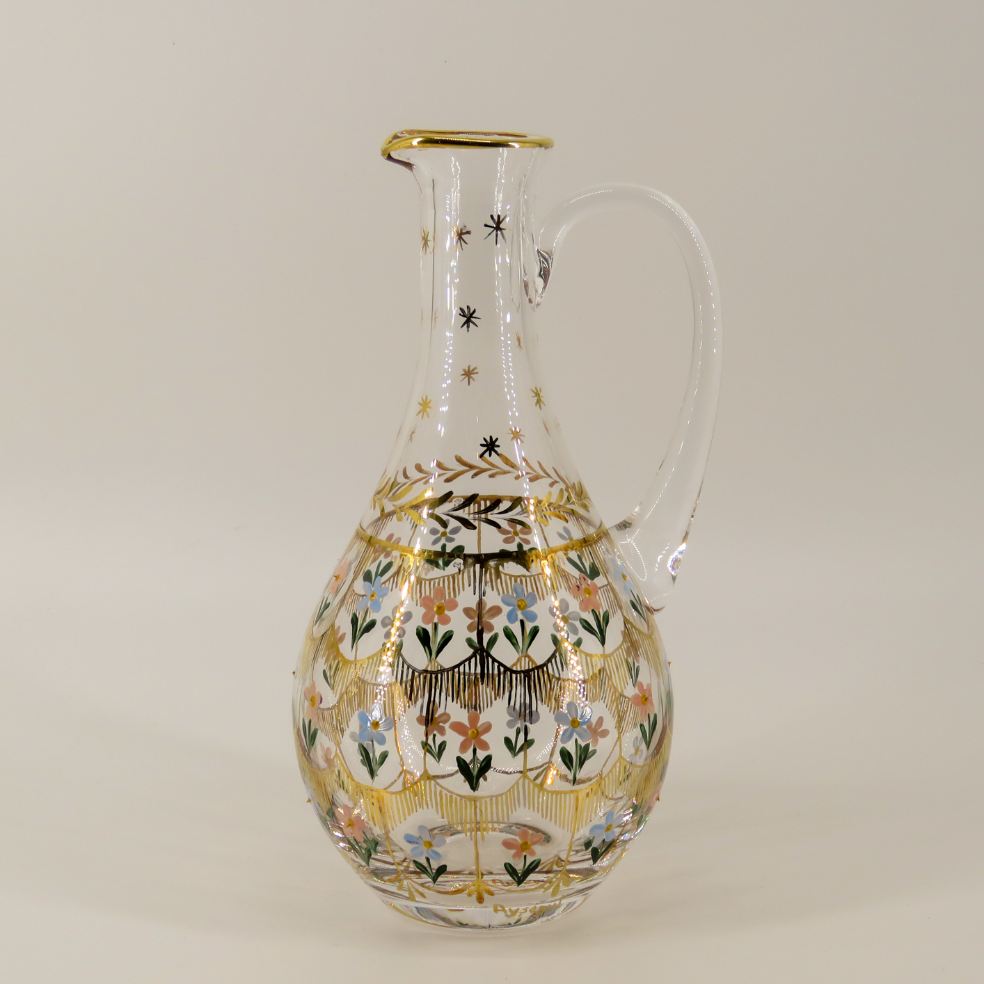 Altın Yaldız ve Emaye İşçiliği: Tasarımın çerçevesini oluşturan altın yaldız hatlar çekildikten sonra, özel cam boyalarıyla “Beykoz çiçekleri” tek tek işlenmiştir.