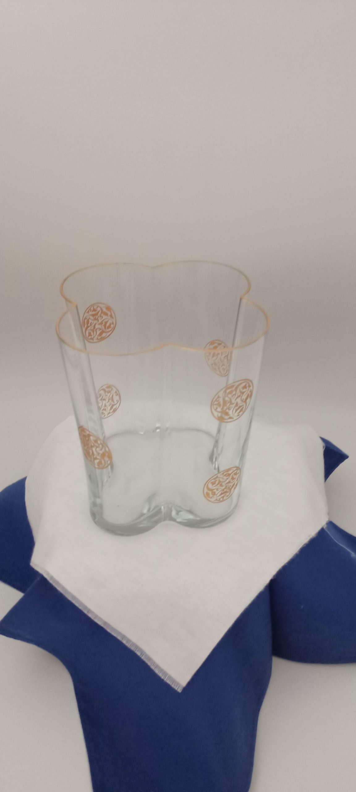 Geleneksel motiflerin camın şeffaf dokusu üzerinde yükseldiği bu eser, ışığı ustalıkla yansıtan altın detayları ve kumlama tekniğinin mat zarafetiyle tam bir görsel şölen sunar.