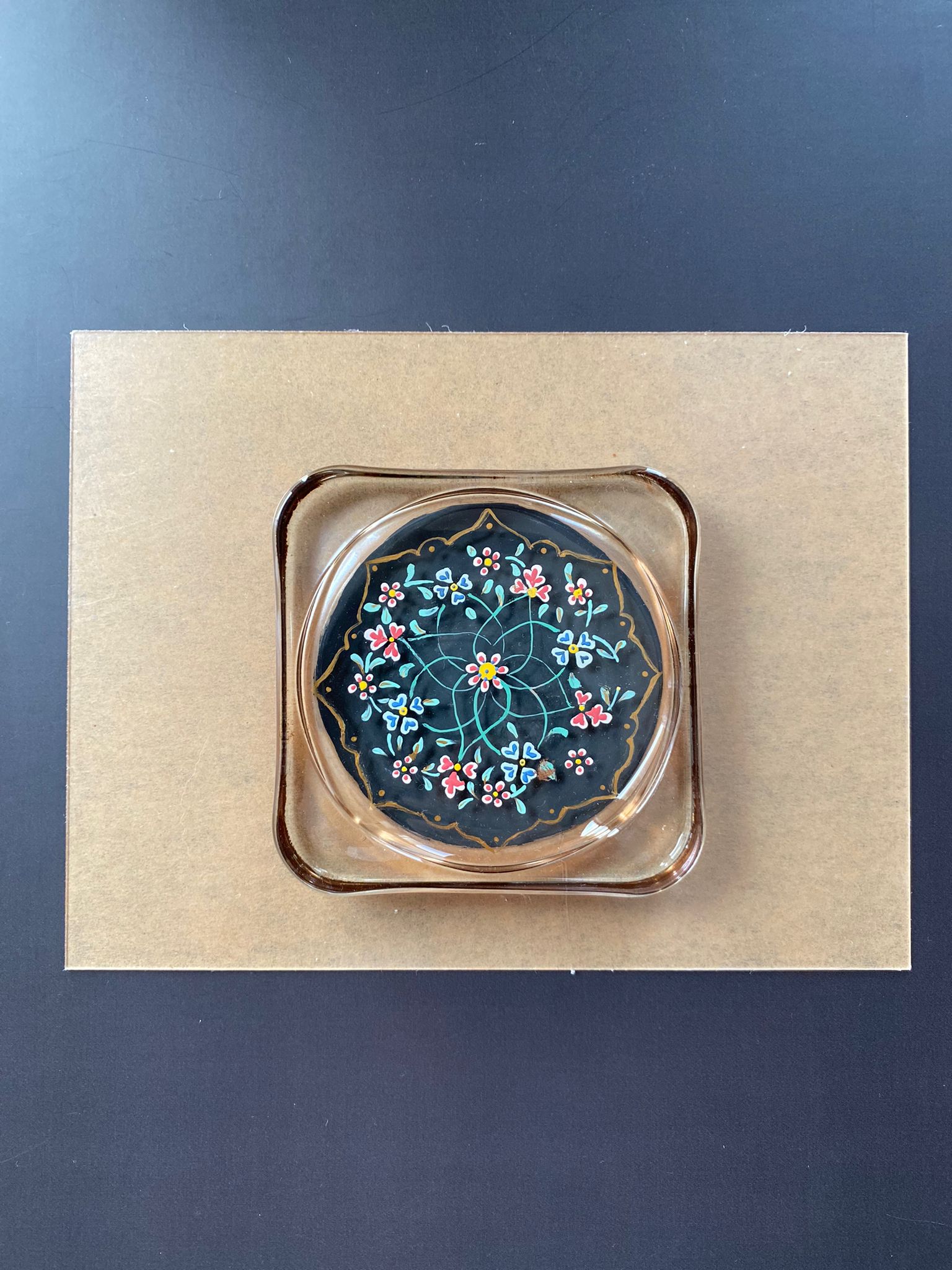 Gece yakıldığında camın çift taraflı boyama tekniği sayesinde desenler büyüleyici bir ışık oyunu oluşturur. Masalarınızda, vitrinlerinizde veya özel bir hediye olarak tercih edebileceğiniz bu obje, koleksiyon değeri taşıyan bir zanaat eseridir.