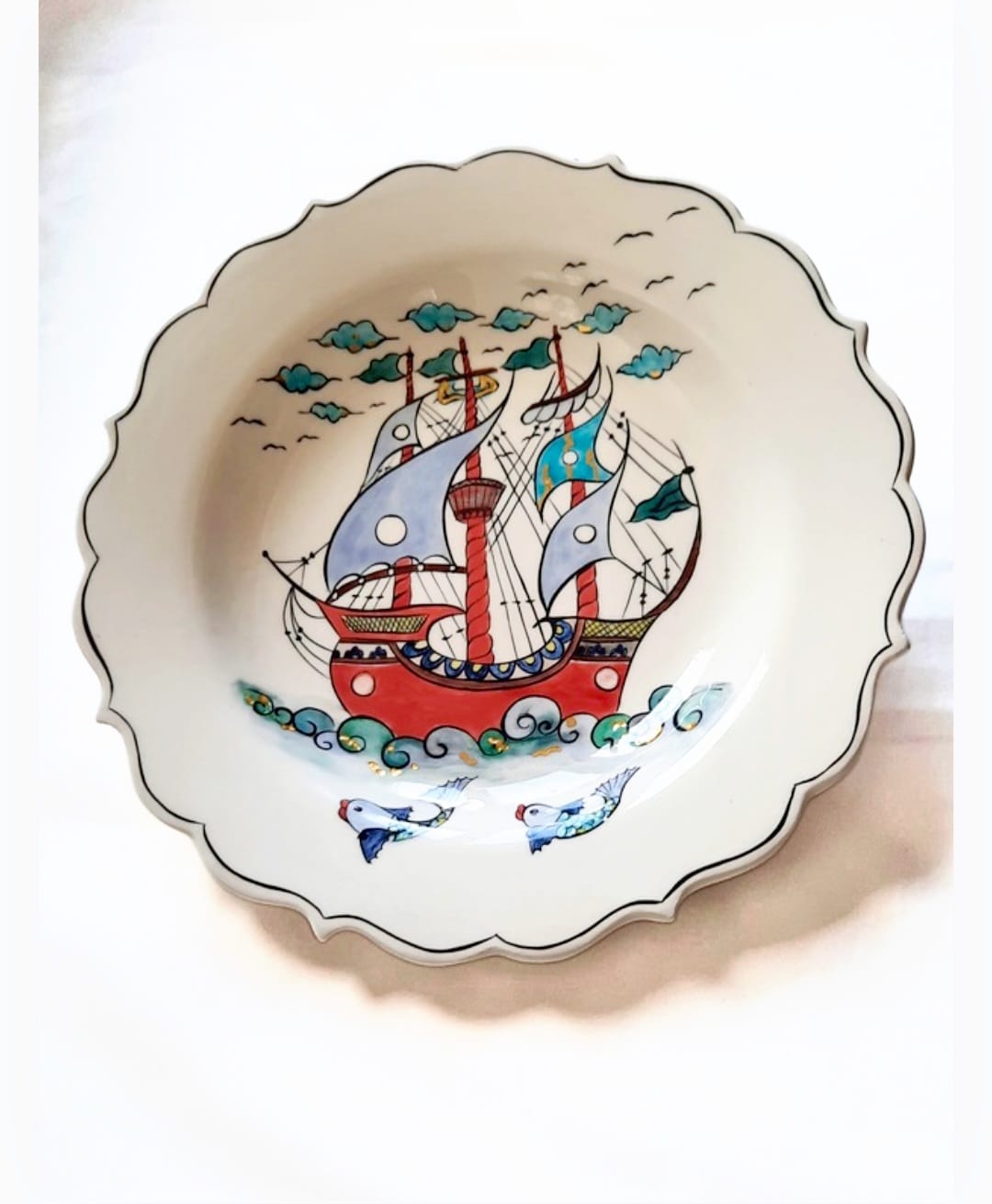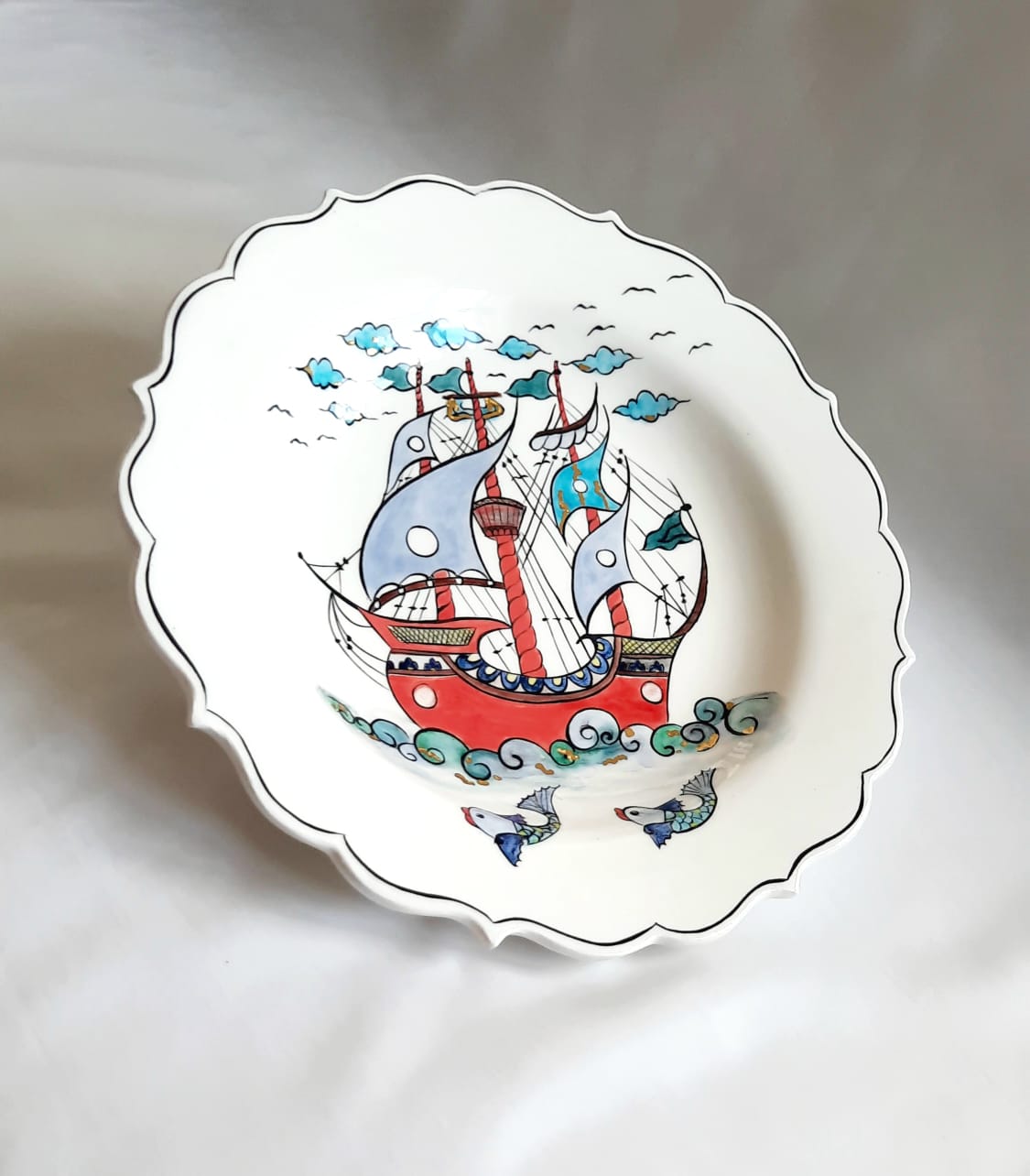 Kalyon deseni, çini sanatında gücü, hayat yolculuğunu, bereketi ve özgürlüğü simgeler. Dalgalarla ilerleyen kalyon; zorluklara karşı direnci, hedefe kararlılıkla ilerlemeyi ve ufka duyulan umudu temsil eder. Gökyüzündeki kuşlar ve denizdeki balıklar ise bolluk, kısmet ve ruhsal özgürlüğün sembolüdür.