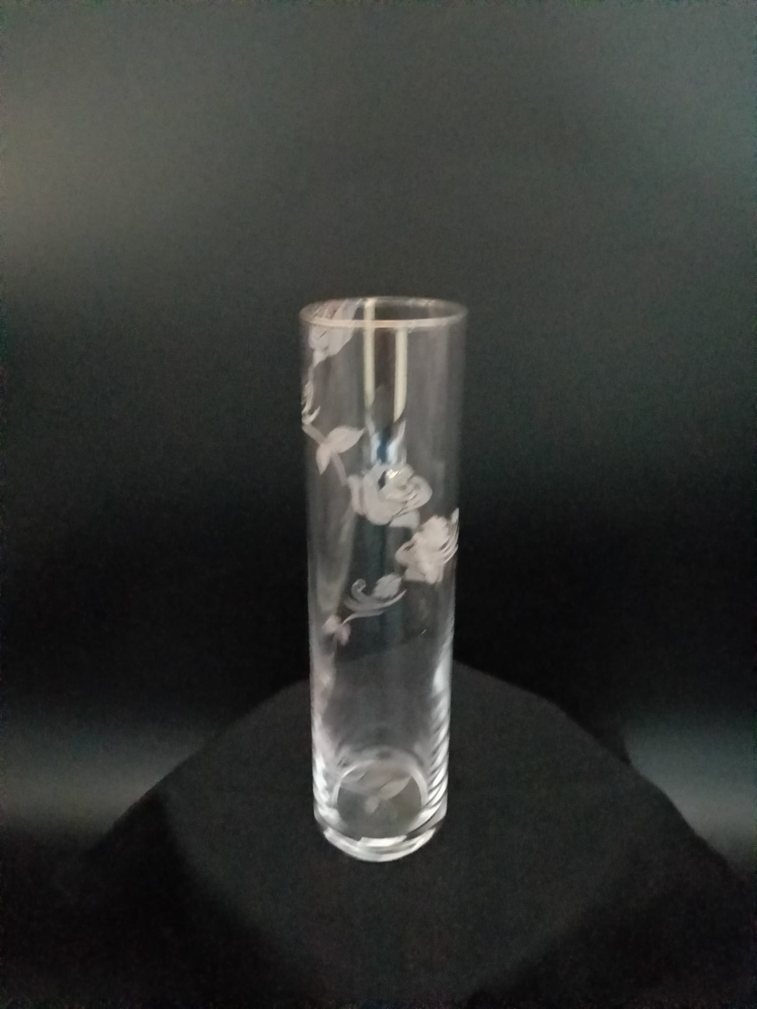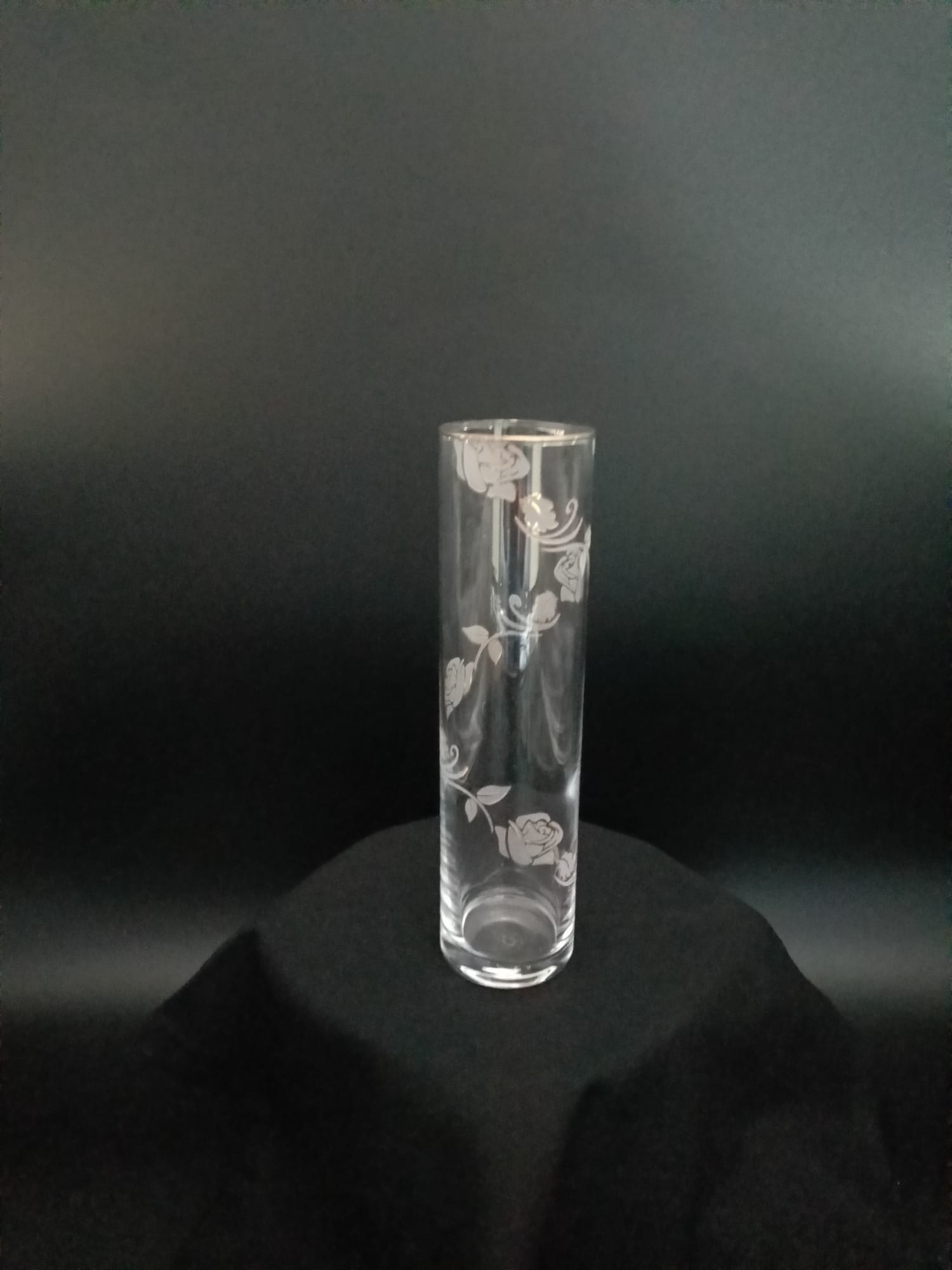 Zarafetin en saf haliyle tanışın! Bu silindir formlu vazo, üzerine titizlikle işlenen gül motifleri ile sofralarınıza ve dekorasyonunuza romantik bir hava katar.