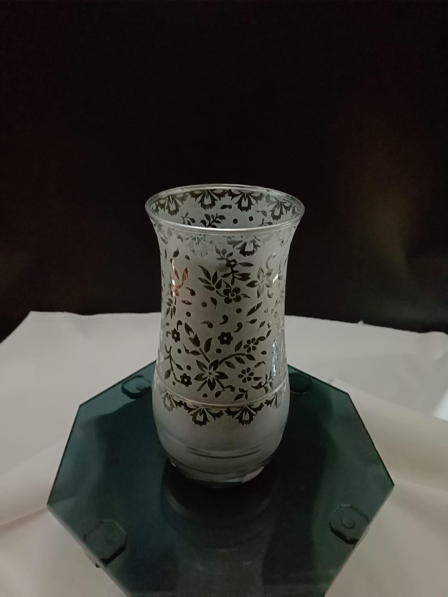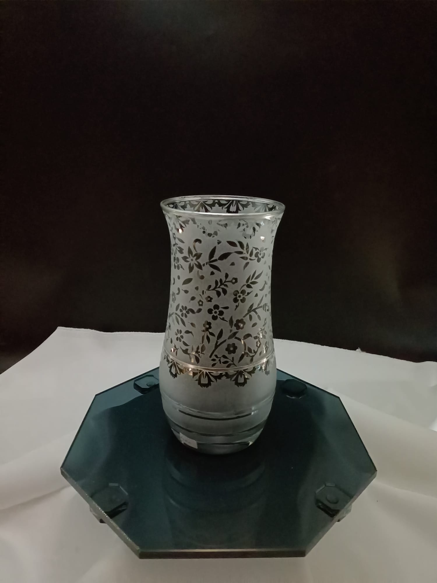 Gümüş Işıltılı: Kumlama İşçilikli Dekoratif Cam Vazo