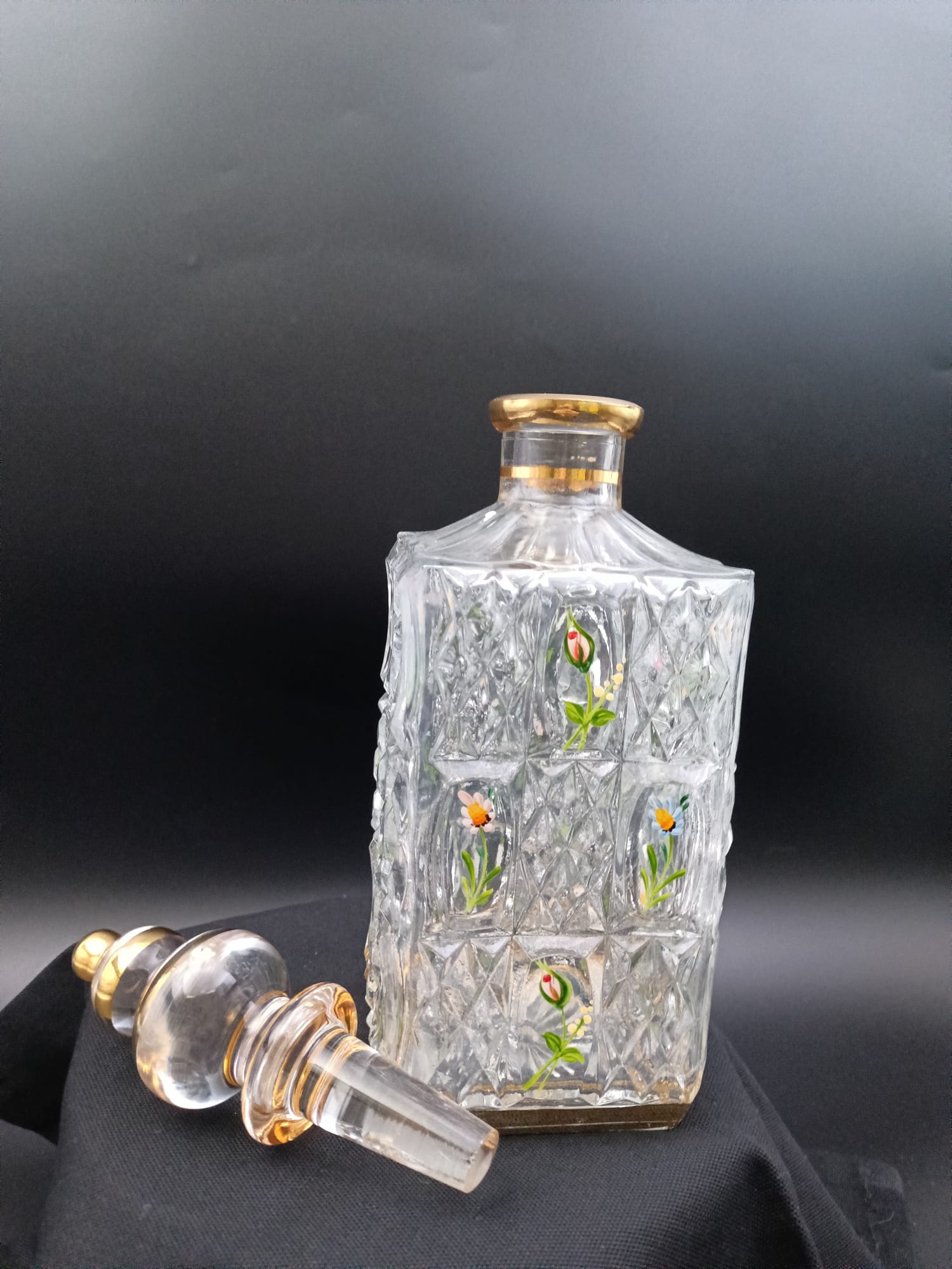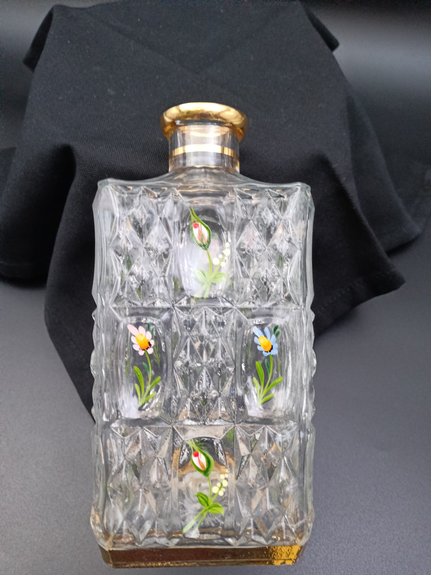 El İşçiliği Gonca Gül Motifli Kesme Viski Şişesi