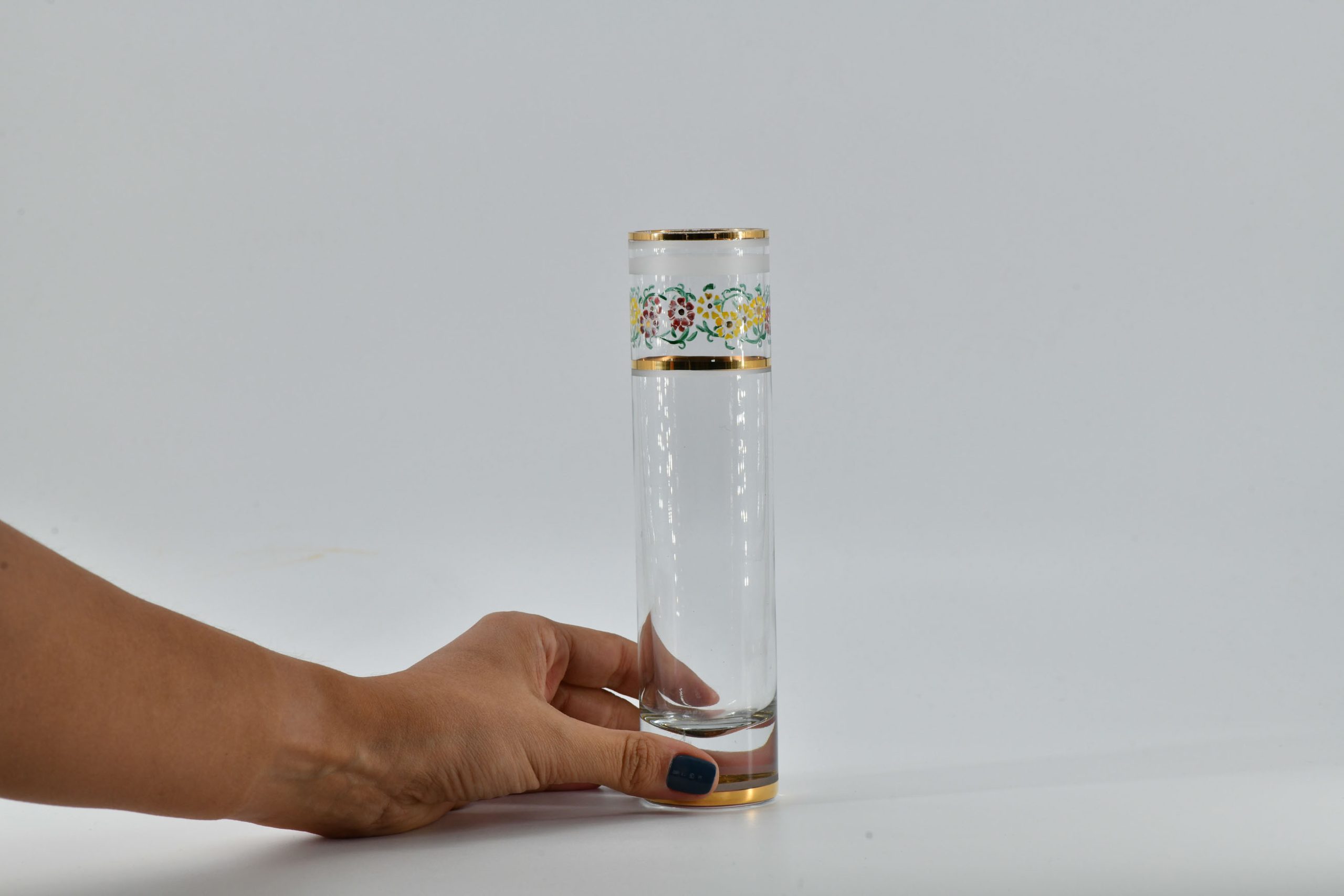 Başlık: El İşçiliği Kumlama ve Altın Yaldız İşlemeli Zarif Silindir Vazo