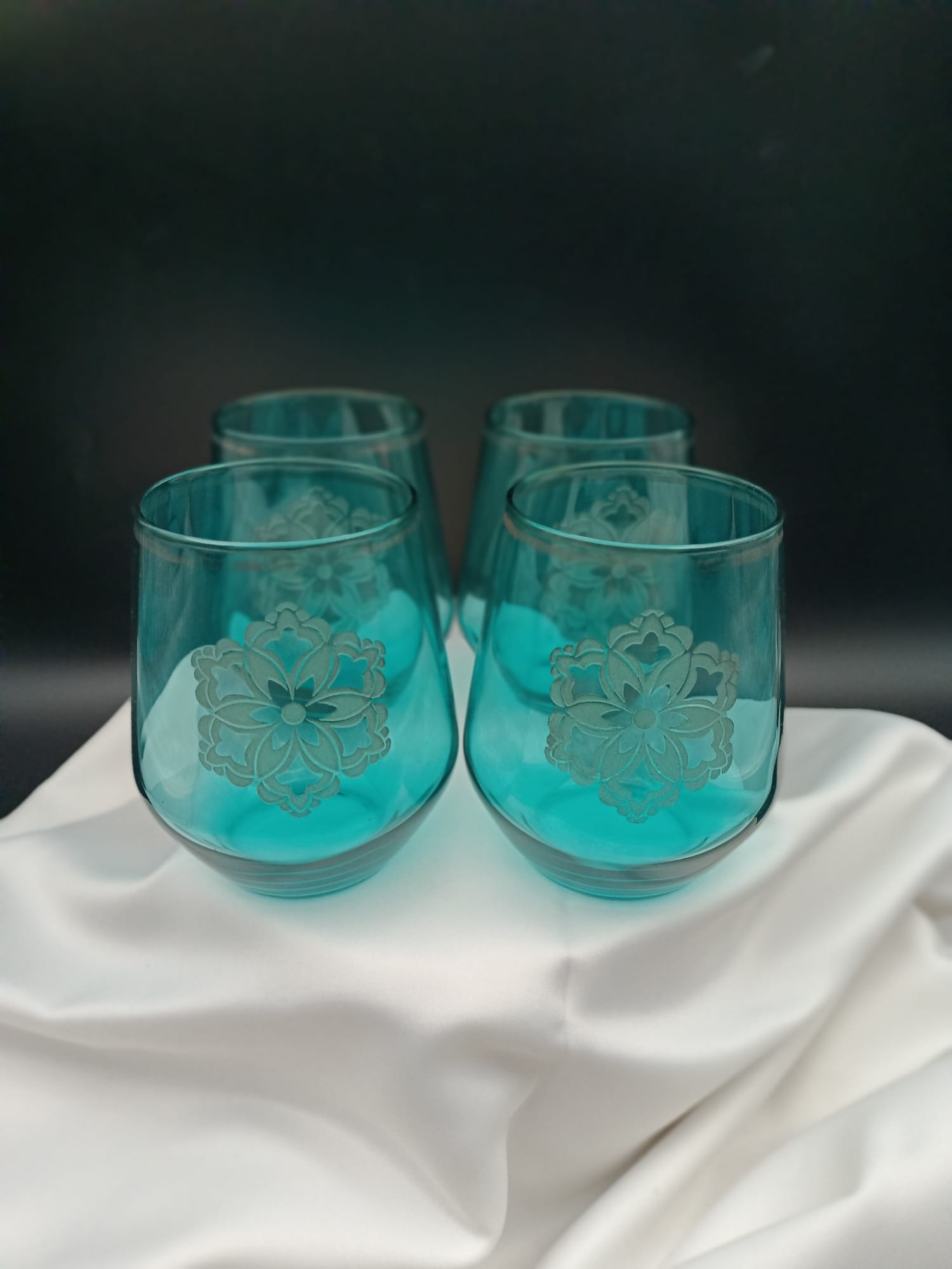 Bu Platin Mavi 4’lü Bardak Seti, modern cam işçiliği ile geleneksel simetri estetiğini bir araya getiriyor. Turkuaz mavisi camın canlılığı, özel tasarım rozet bezemeler ve platin dokunuşlarla birleşerek sofralarınıza prestijli bir hava katıyor.