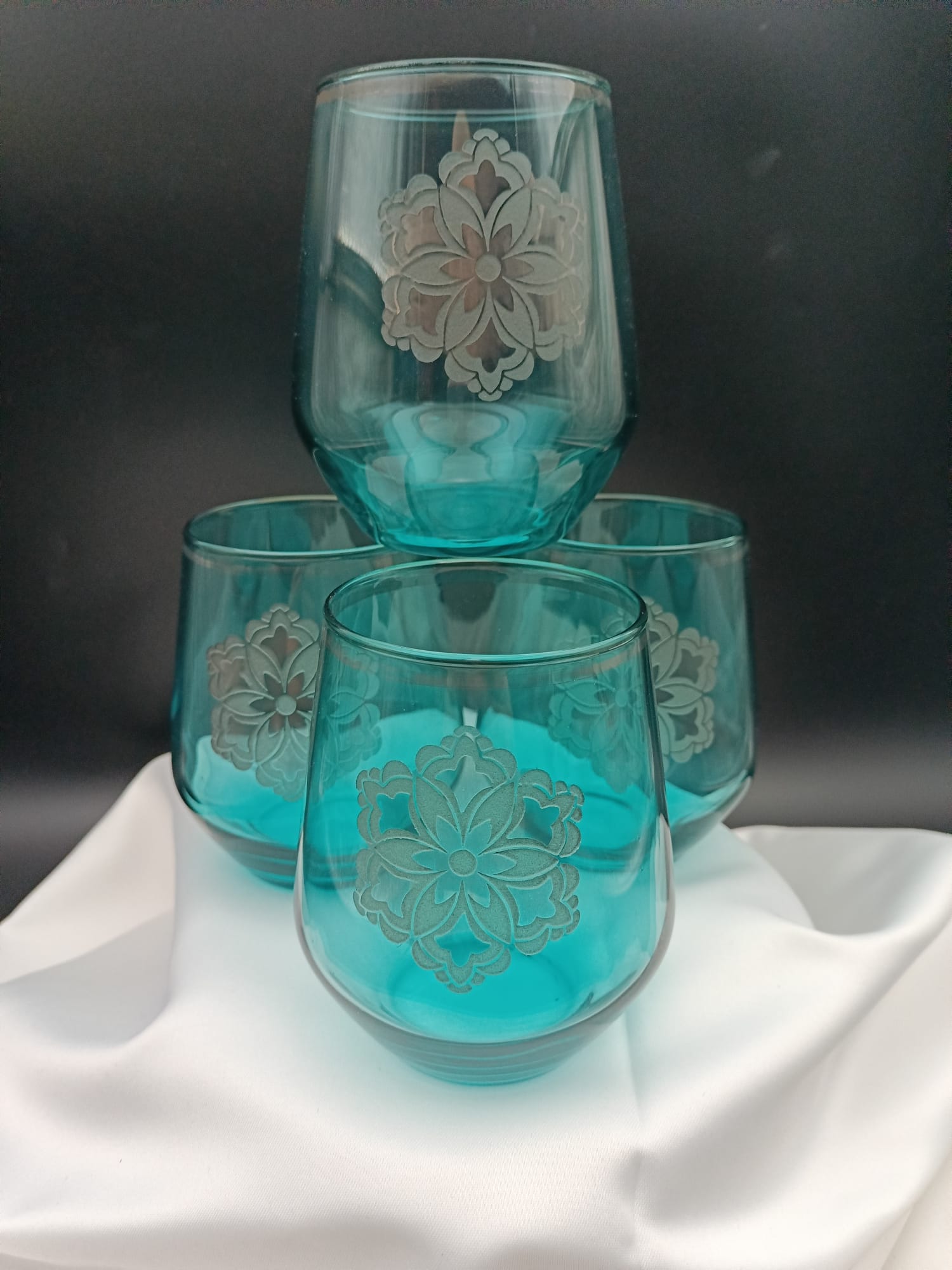 • Özel Rozet Bezeme: Bardakların merkezinde yer alan simetrik çiçek formu, özel bir tasarımın ürünüdür. Merkezden dışa doğru yayılan bu geometrik kompozisyon, objeye denge ve estetik bir derinlik kazandırır.