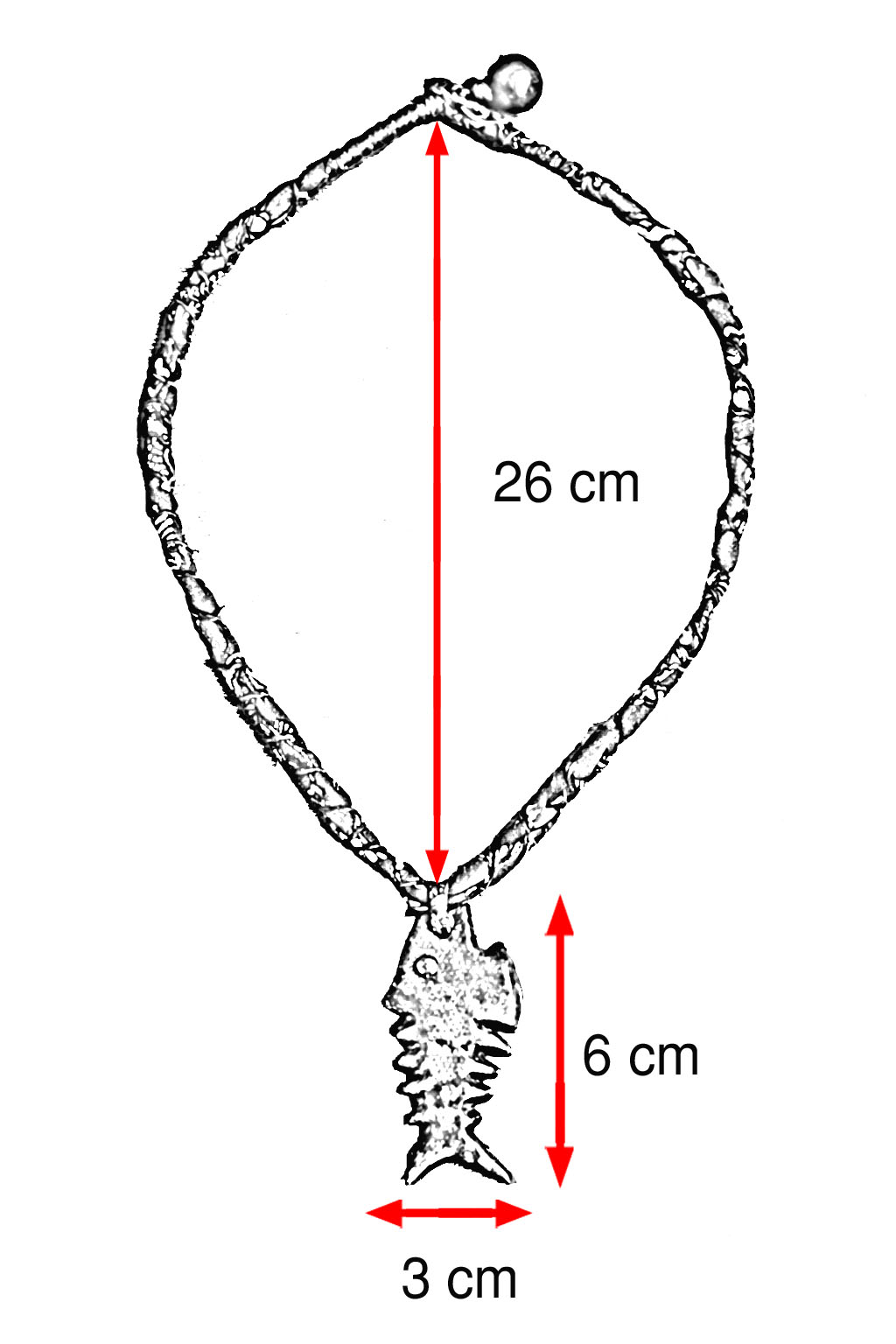 Ölçüler: Kolye ucu: 3x6cm. / Kordon: 26 cm