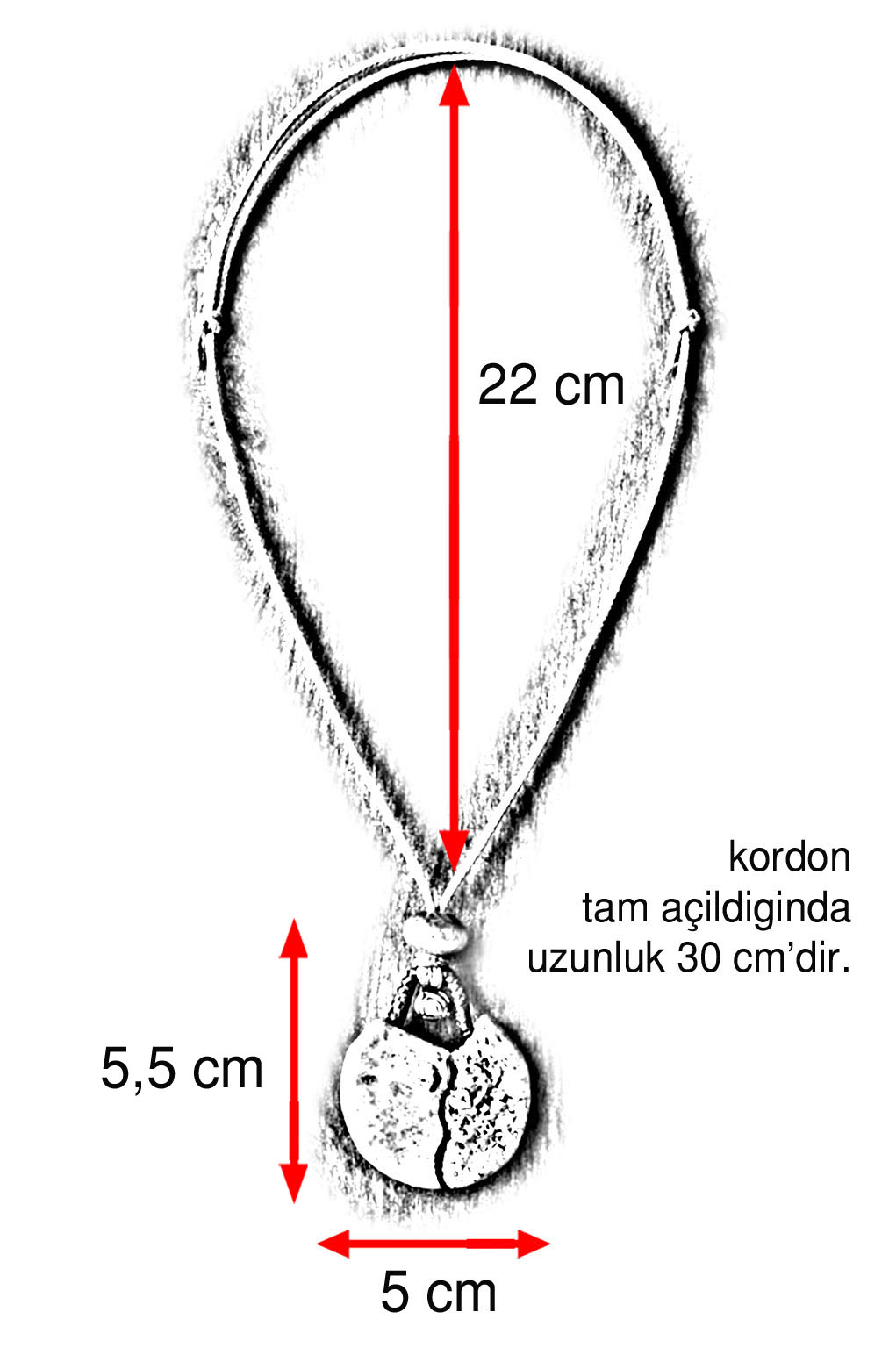 Ölçüler: Kolye ucu: 5.5x5 cm. / Kordon: 22 cm